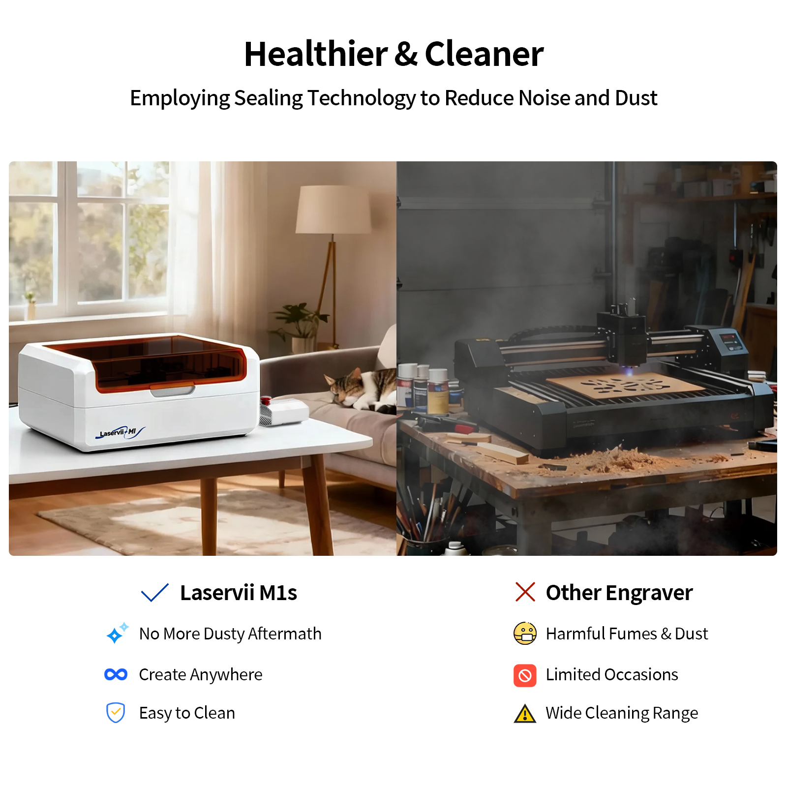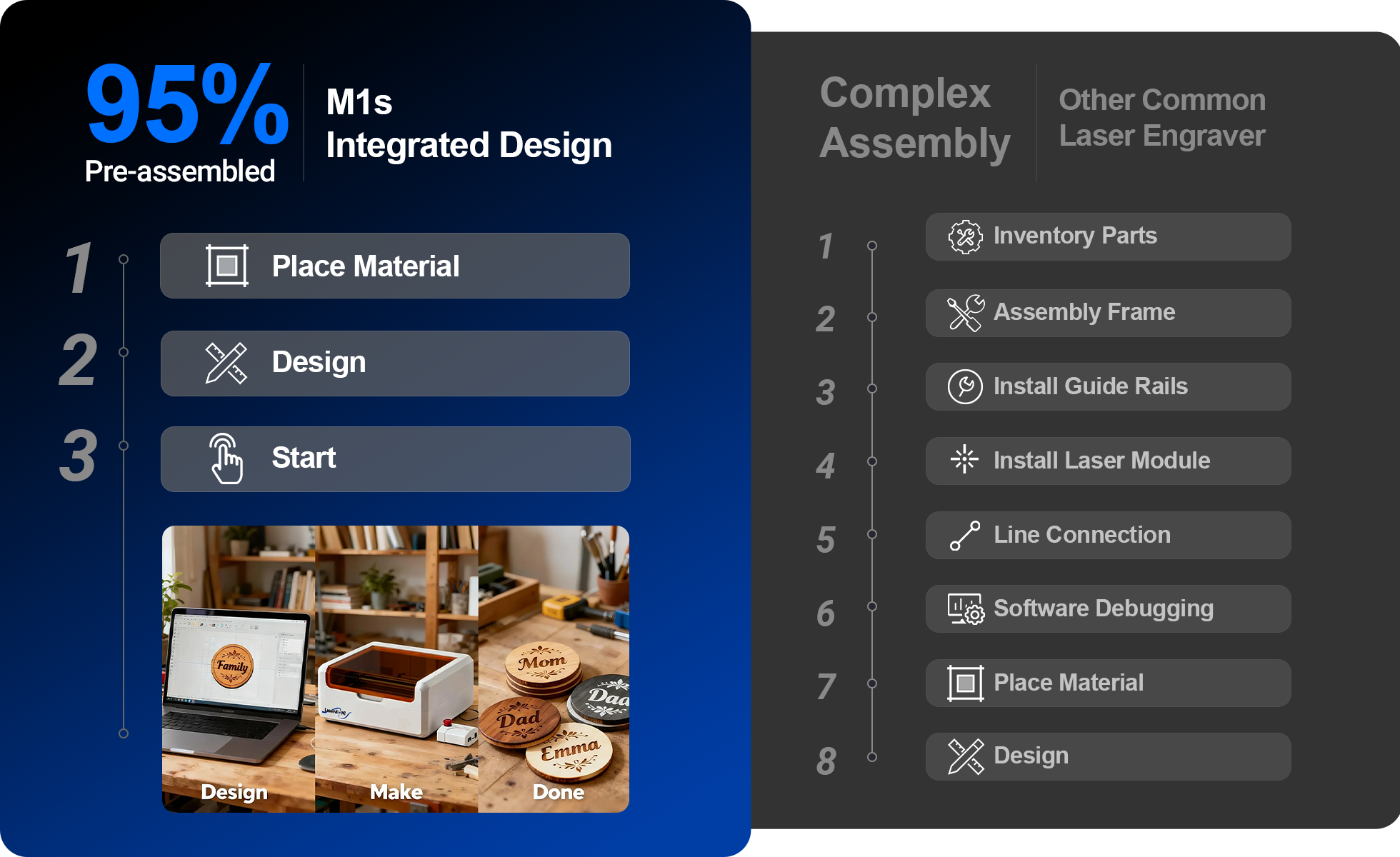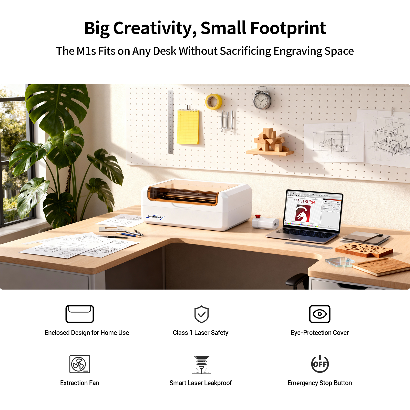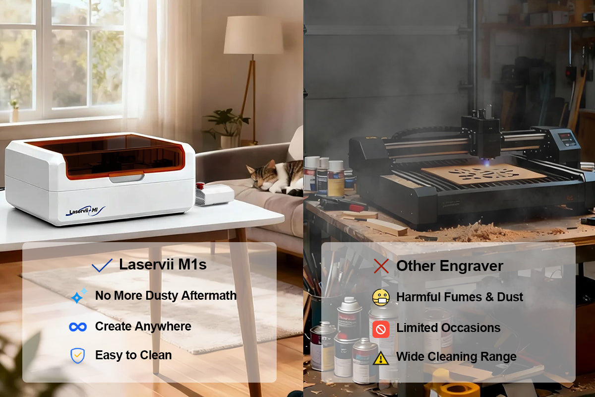 The M1s’s Compact, All-in-one Design Gives you a Full Laser Workshop in Less than 0.2㎡ — So you Have Room to Create, not just Operate.