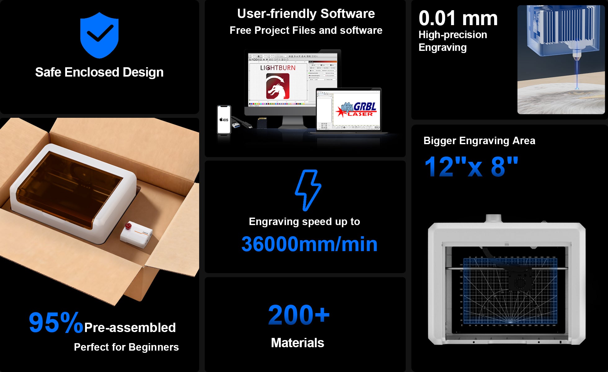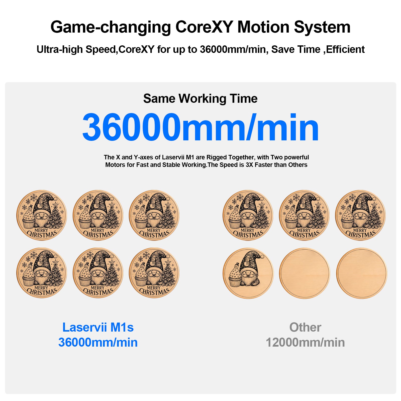 With engraving speeds reaching up to 36000mm/min, both mass production and personal projects can be completed without lengthy waits. Outpacing standard desktop engravers by over 150%, it compresses tasks that once took hours into mere minutes, delivering a quantum leap in your productivity.